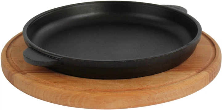 Порційна сковорода чавунна з круглою дерев'яною підставкою Brizoll 200 х 25 мм