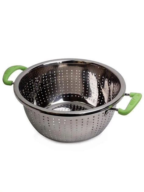 Друшляк-сито EB-18089 22x9.5 см з 2 бічними ручками і плоским дном з нержавної сталі Зелений