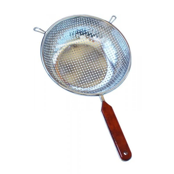 Друшляк Dynasty Xiongchu 18см сталевий з плоским дном і дерев'яною ручкою (109519)