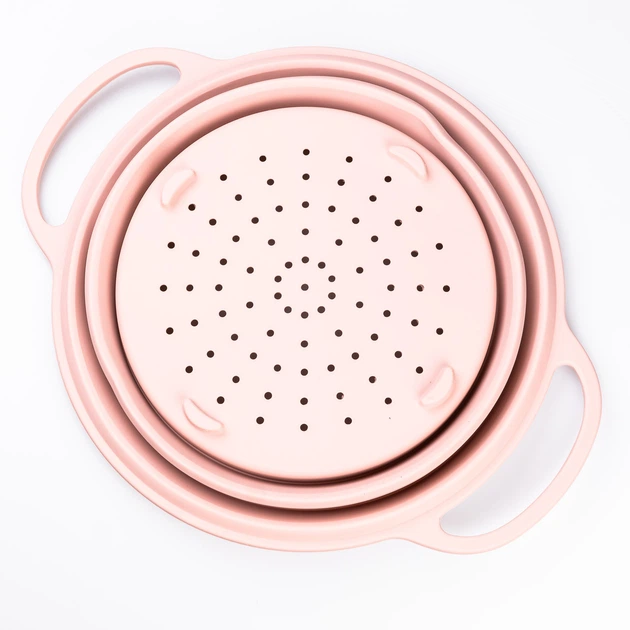 Друшляк силіконовий складаний з ручками 2.6 л Рожевий