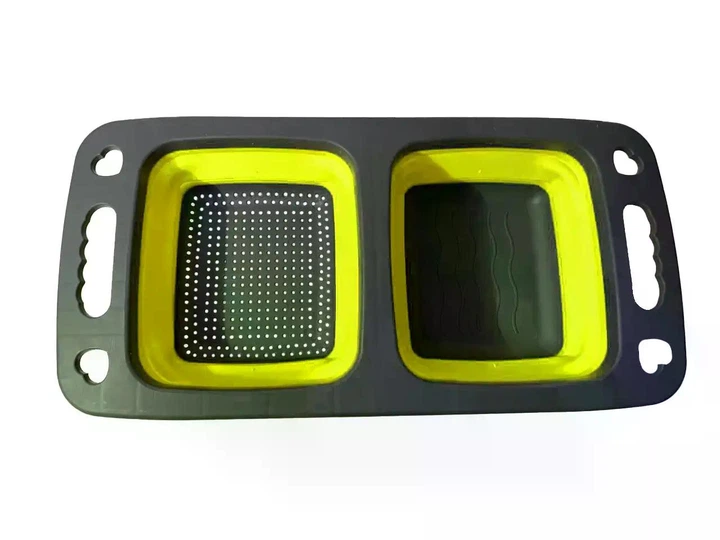 Дошка-друшляк силіконова складна миска-трансформер для овочів та фруктів 2 шт в одному Жовтий