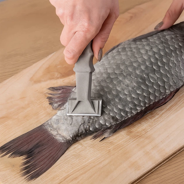 Рибочищення скребок для рибної луски з пластиковою ручкою 15.5 см Сірий