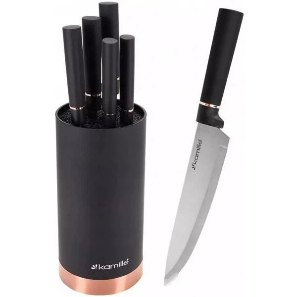 Набір 5 кухонних ножів Kamille Black&Rose з підставкою-колодою (245266)