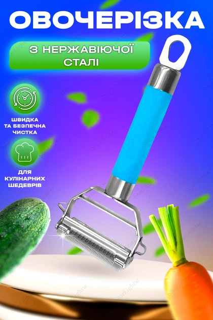 Ніж економка для чищення овочів шатківниця універсальна ніж овочечистка ручна 2в1 двостороння BRS Blue