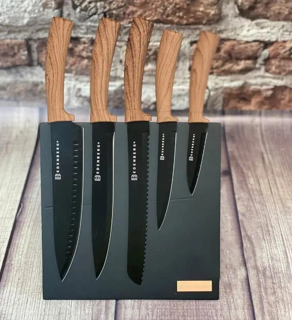 Набір ножів 6 предметів з підставкою Коричнево-Зелений