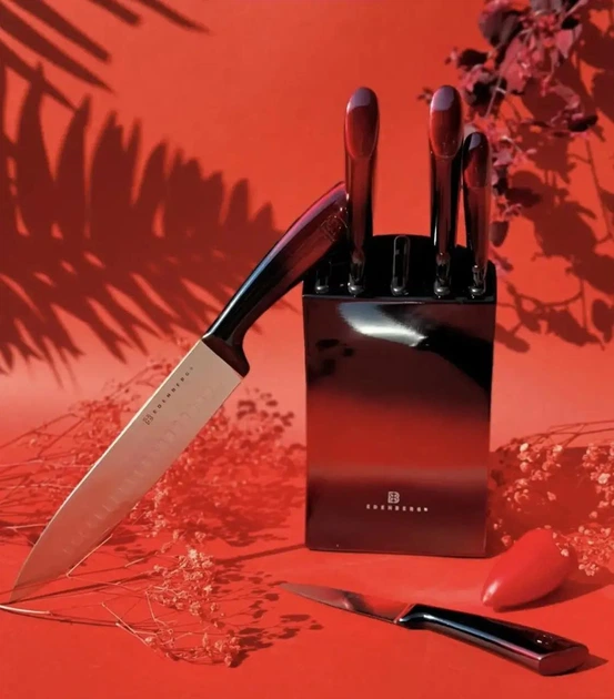Набір ножів 6 предметів з підставкою Червоно-Чорний