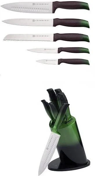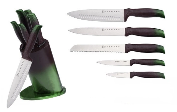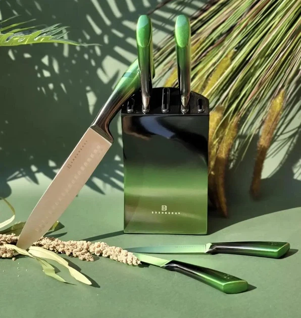 Набір ножів 6 предметів з підставкою Зелено-Чорний