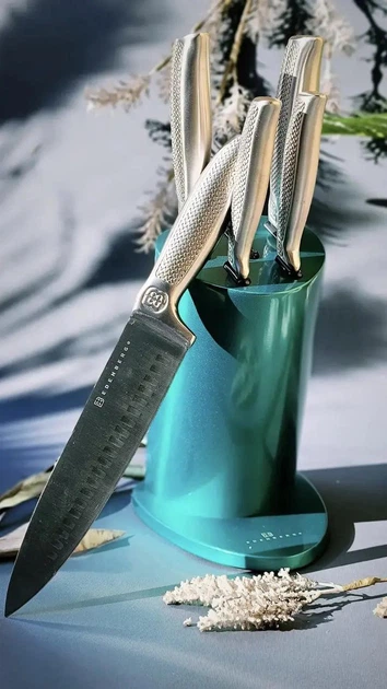 Набір ножів 6 предметів з підставкою Бірюзовий