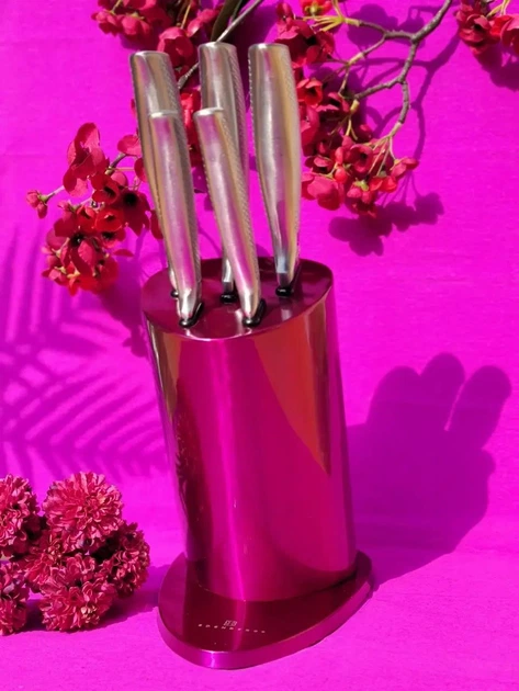 Набір ножів 7 предметів з підставкою Рожеве золото