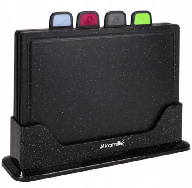 Набір кухонних обробних дощок на підставці Kamille Vizo (4 дошки + підставка) Чорний