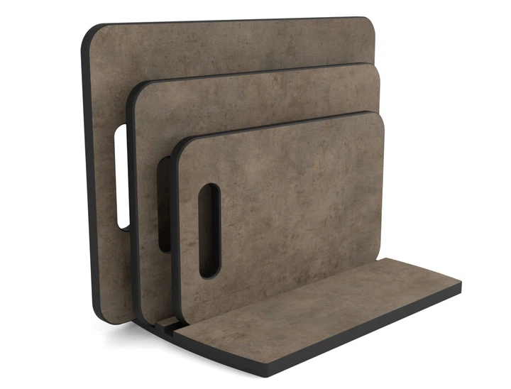 Комплект обробних дощок для нарізки продуктів 3 шт з підставкою, з компакт-плити Бетон Чикаго темно-сірий