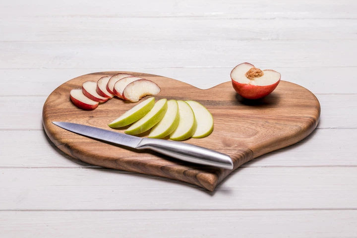 Дошка дерев'яна на стіл для обробки м'яса риби з персоналізацією EcoWalnut Дошка горіхова "Серце" L