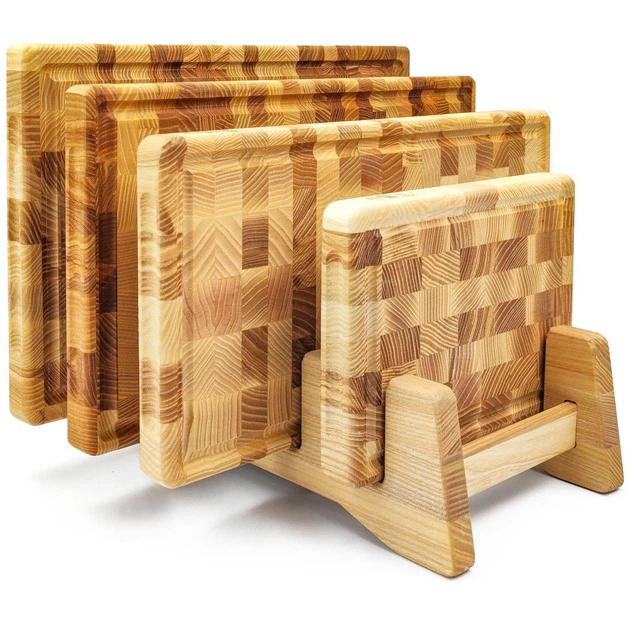 Набір обробних кухонних торцевих дерев'яних досок прямокутні з виїмкою ясен з підставкою (16,13-30,16-30,18-30,20)