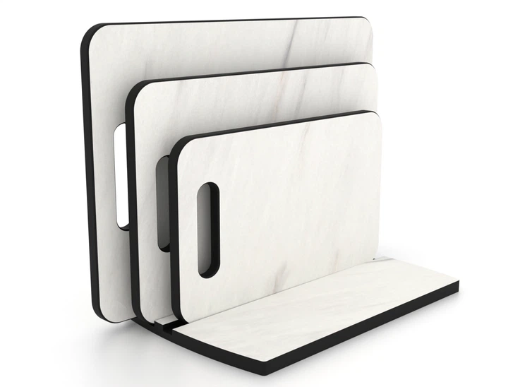 Комплект обробних дощок для нарізки продуктів 3 шт з підставкою, з компакт-плити Мармур Леванто білий