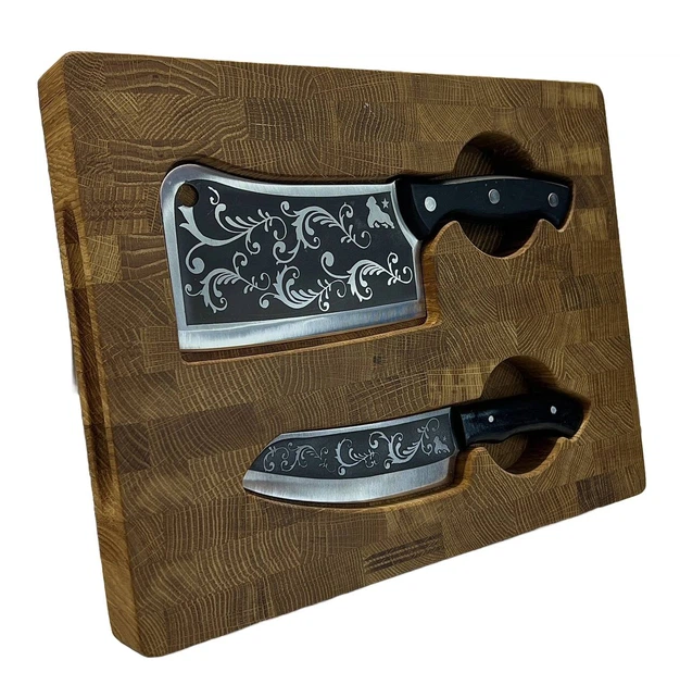 Набір кухонний торцева дошка обробна з кухонною сокиркою Візерунок і ножем Шашличник Gorillas BBQ DS35