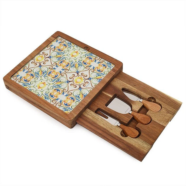 Скляна дошка із 3 приладами для подачі сиру Medicea