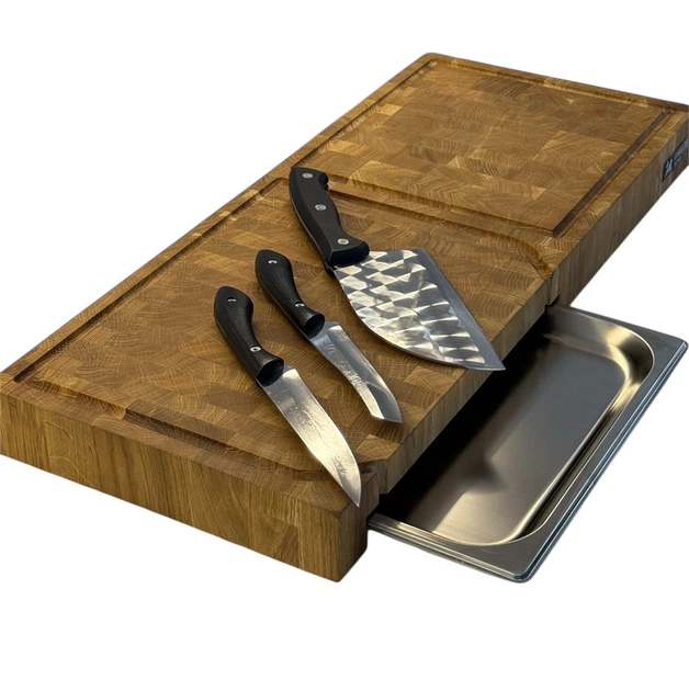 Набір кухонний подвійна торцева дошка з гастроємністю і набором з 3-х ножів Gorillas BBQ DS64