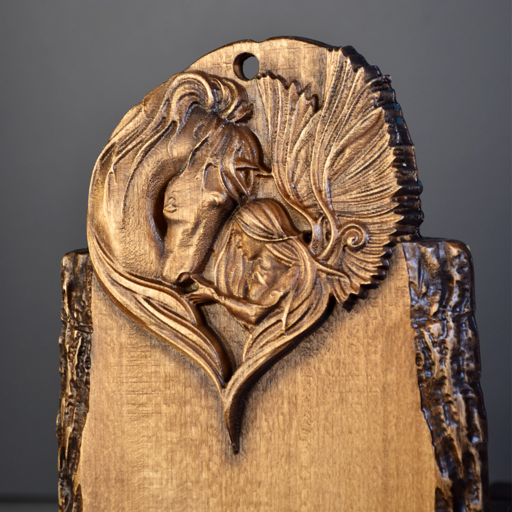 Дошка обробна дерев'яна дівчинка з конем . Розмір 15 х 27 см. Код/Артикул 116