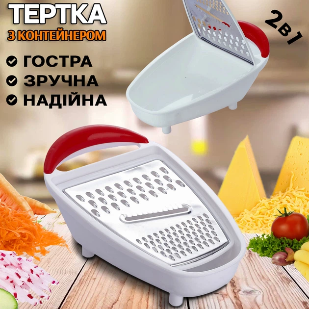 Мультифункціональна терка з контейнером GNS Grater три види ріжучих отворів у відкидній кришці Біло-червоний