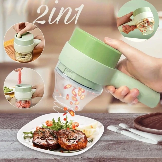 Акумуляторна овочерізка FOOD CHOPPER 2 в 1 електричний ручний подрібнювач зелений АБС нержавіюча сталь