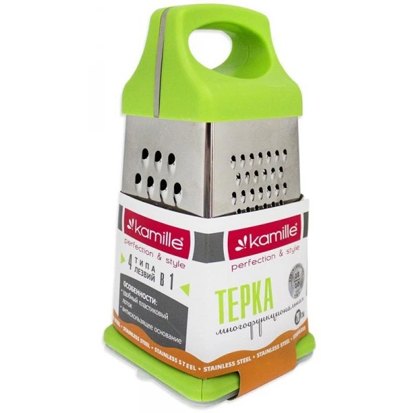 Терка-шинківниця Kamille 22см 4х гранна з пластиковою ручкою та лотком (109538)