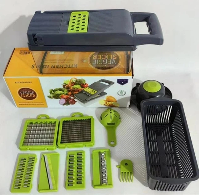 Багатофункціональна кухонна овочерізка – мультислайсер зі змінними насадками з контейнером 14 до 1 Vegetable Salad Cutter
