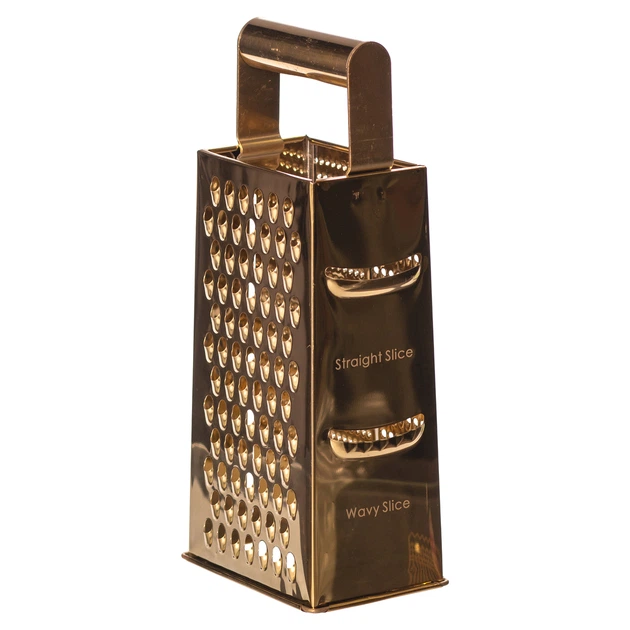 Тертка чотиристороння з нержавіючої сталі золотиста для сиру та овочів кухонна терка 24 см (524935)