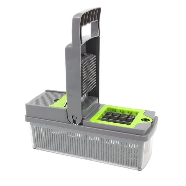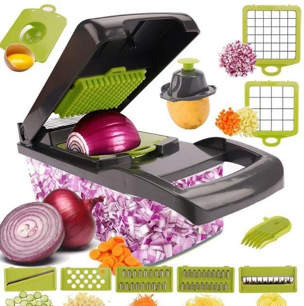 Багатофункціональна овочерізка 14-в-1 з контейнером, тертками та насадками для нарізування кубиками та шатківниці