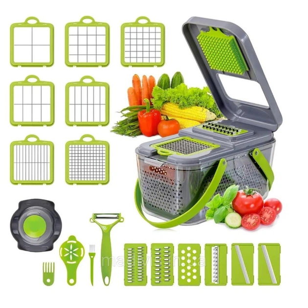 Подрібнювач овочів і фруктів, слайсер з контейнером і сепаратором для яєць Veggie Slicer 22в1