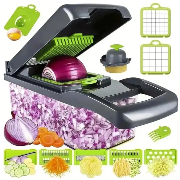 Овочерізка 16 в 1 кругла із змінними насадками та контейнером Nicer Dicer Plus Vegetable Cutter 223-1 зеленый