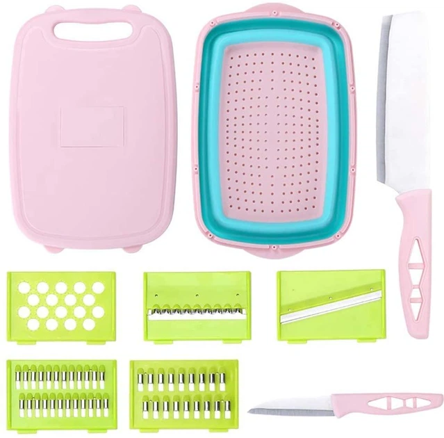 Овочерізка EL-1132 для фігурної нарізки овочів фруктів багатофункціональна обробна дошка складна зливна кошик Рожева/Бірюзов