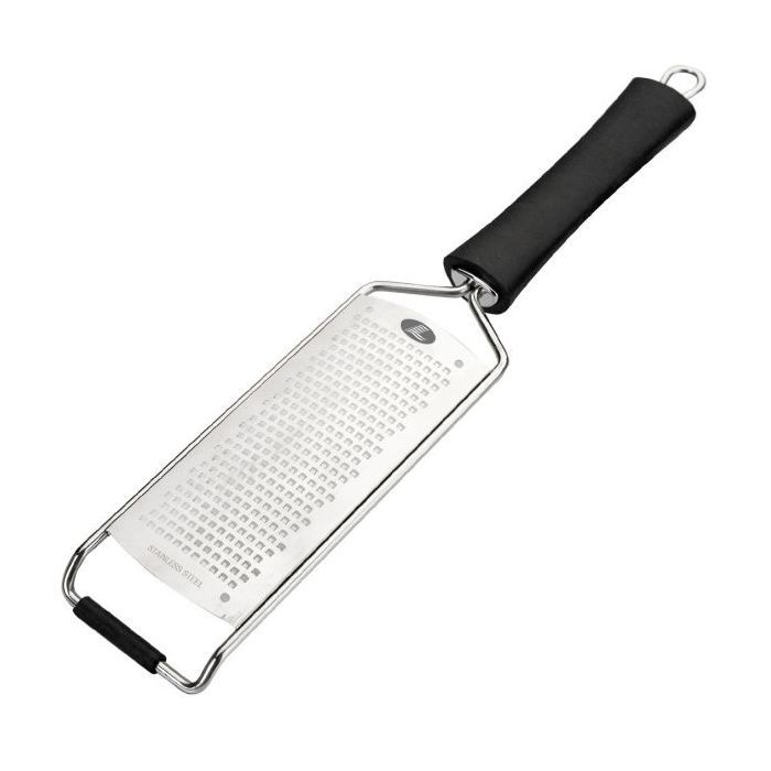 Терка Gipfel Hercules 22,5 см 9806 сделана из нержавеющей стали с элементами пластика, ручка из термопластичной резины "Soft Touch". Лезвия оснащены антиприлипающим покрытием с противоскользящим основанием, что делает терку удобной как в использовании так и в очистке.