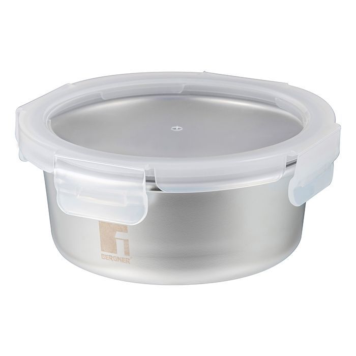 Харчовий контейнер Bergner Go Lovers з нержавіючої сталі круглий 690 мл (BG-36315-GY) BG-36315-GY