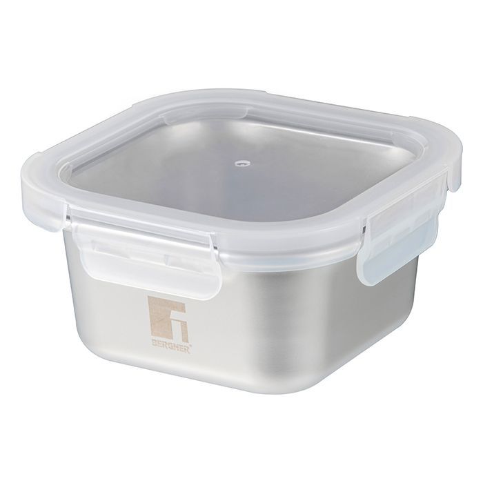 Харчовий контейнер Bergner Go Lovers з нержавіючої сталі квадратний 640 мл (BG-36313-GY) BG-36313-GY