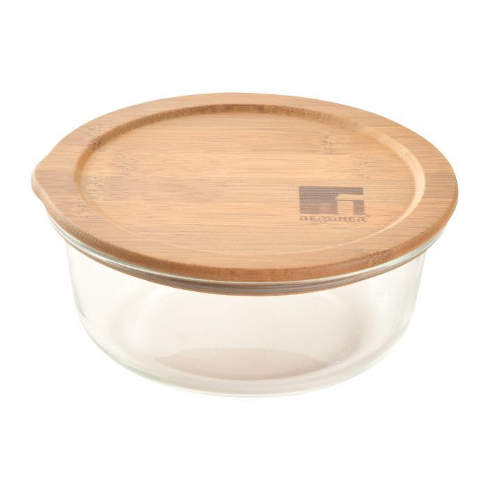 Форма - кругла, Об'єм - 950 мл, Матеріал контейнера - боросилікатне скло, бамбук, Кількість контейнерів - 1 шт, Колір - прозорий