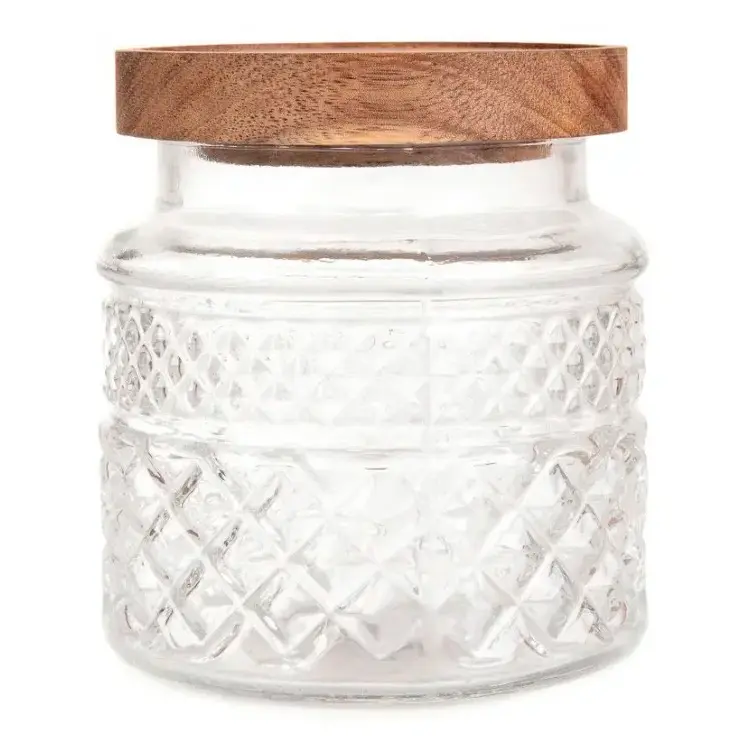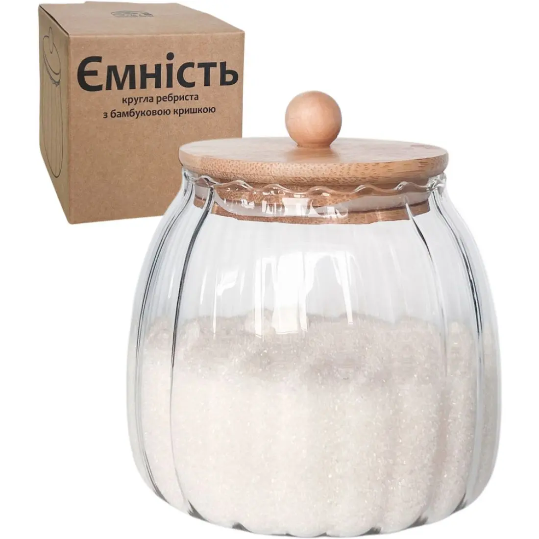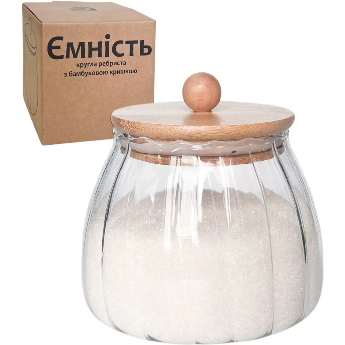 Ємність S&T кругла ребриста з бамбуковою кришкою 800 мл скляна (7029-12)