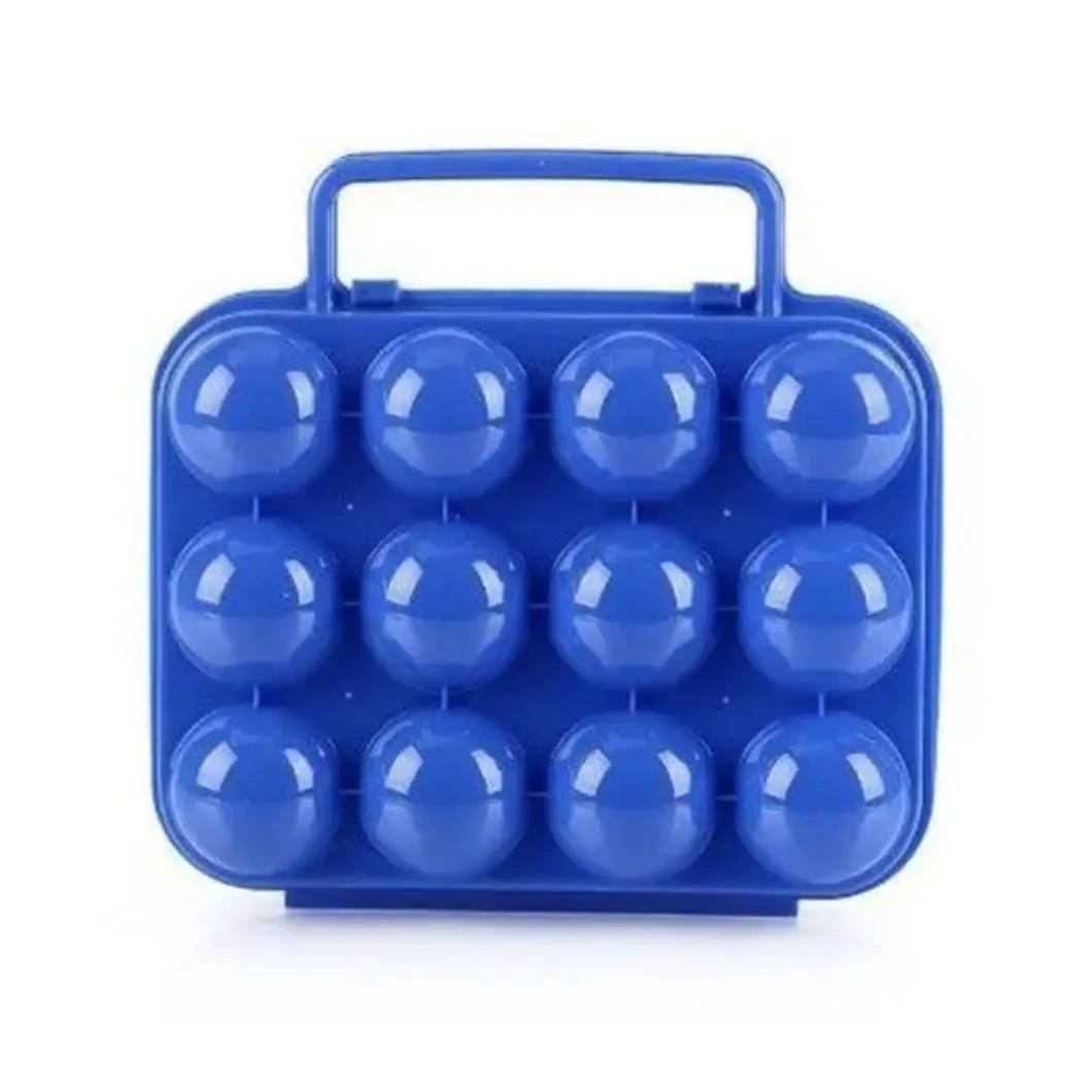 Контейнер пластиковий синього кольору для транспортування 12 яєць із затискачами та ручками із захистом від розбивання.