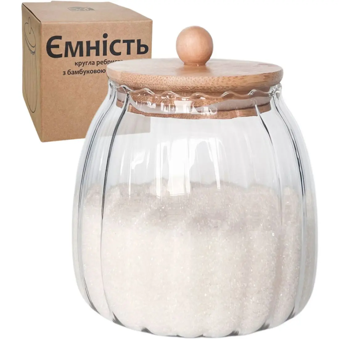 Ємність S&T кругла ребриста з бамбуковою кришкою 600 мл скляна (7029-11)