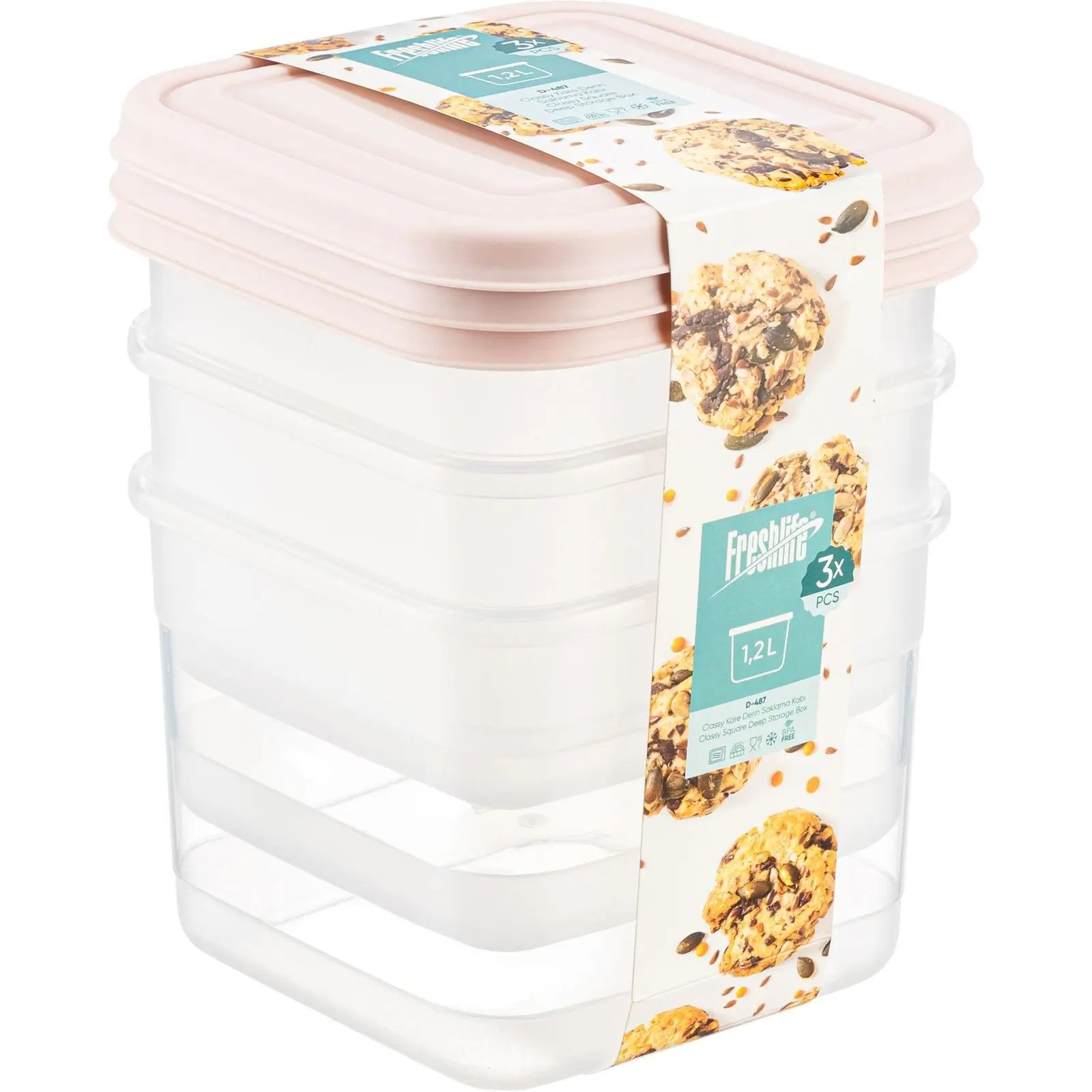 Контейнер для зберігання продуктів Freshlife квадратний 3 шт. х 1.2 л (D - 487)