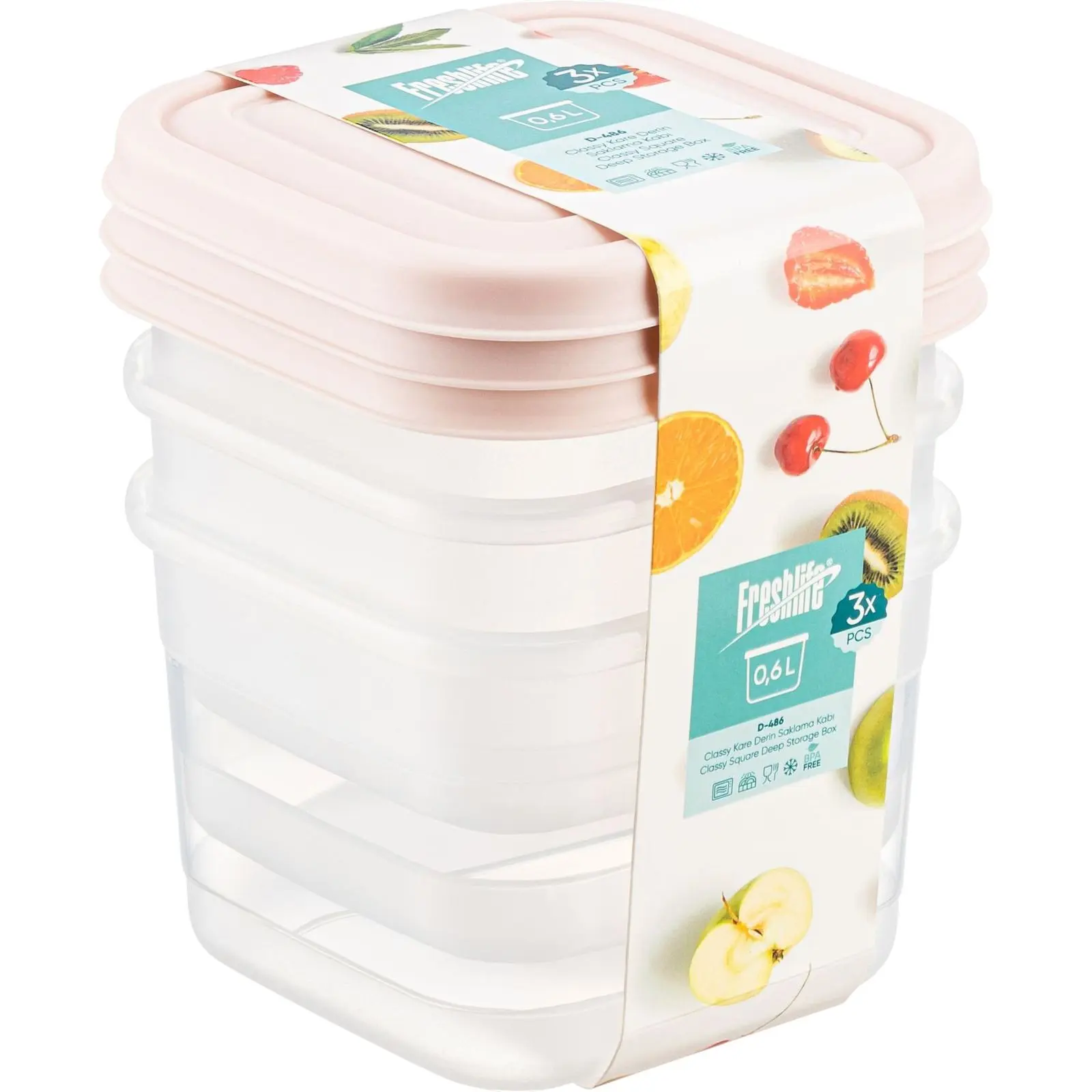 Контейнер для зберігання продуктів Freshlife квадратний 3 шт. х 0.6 л (D - 486)