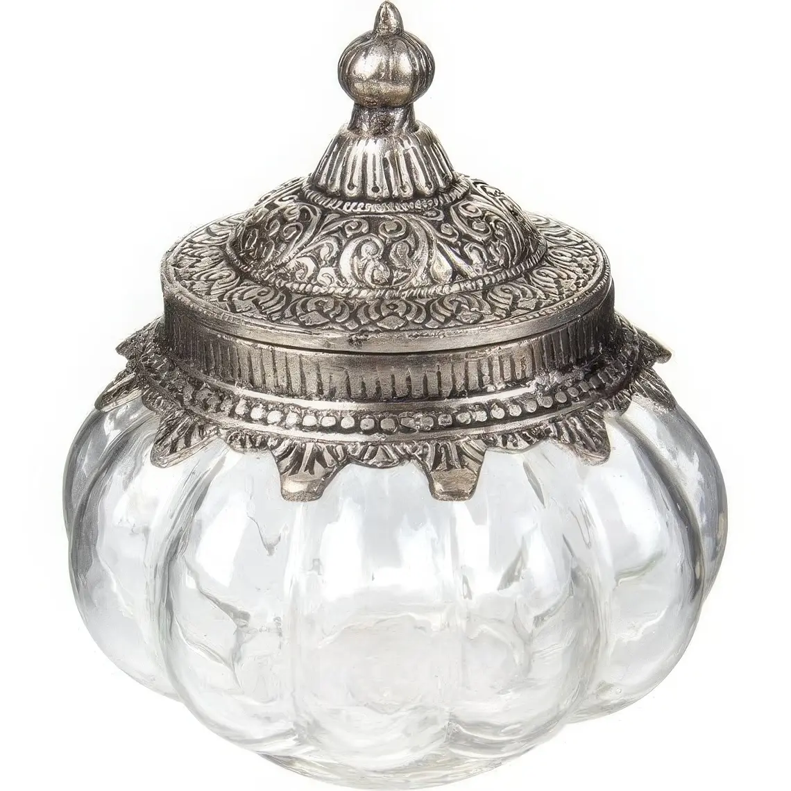 Декоративна банка для сипучих продуктів Lefard скляна з металевою кришкою 9х9 см (876-079)