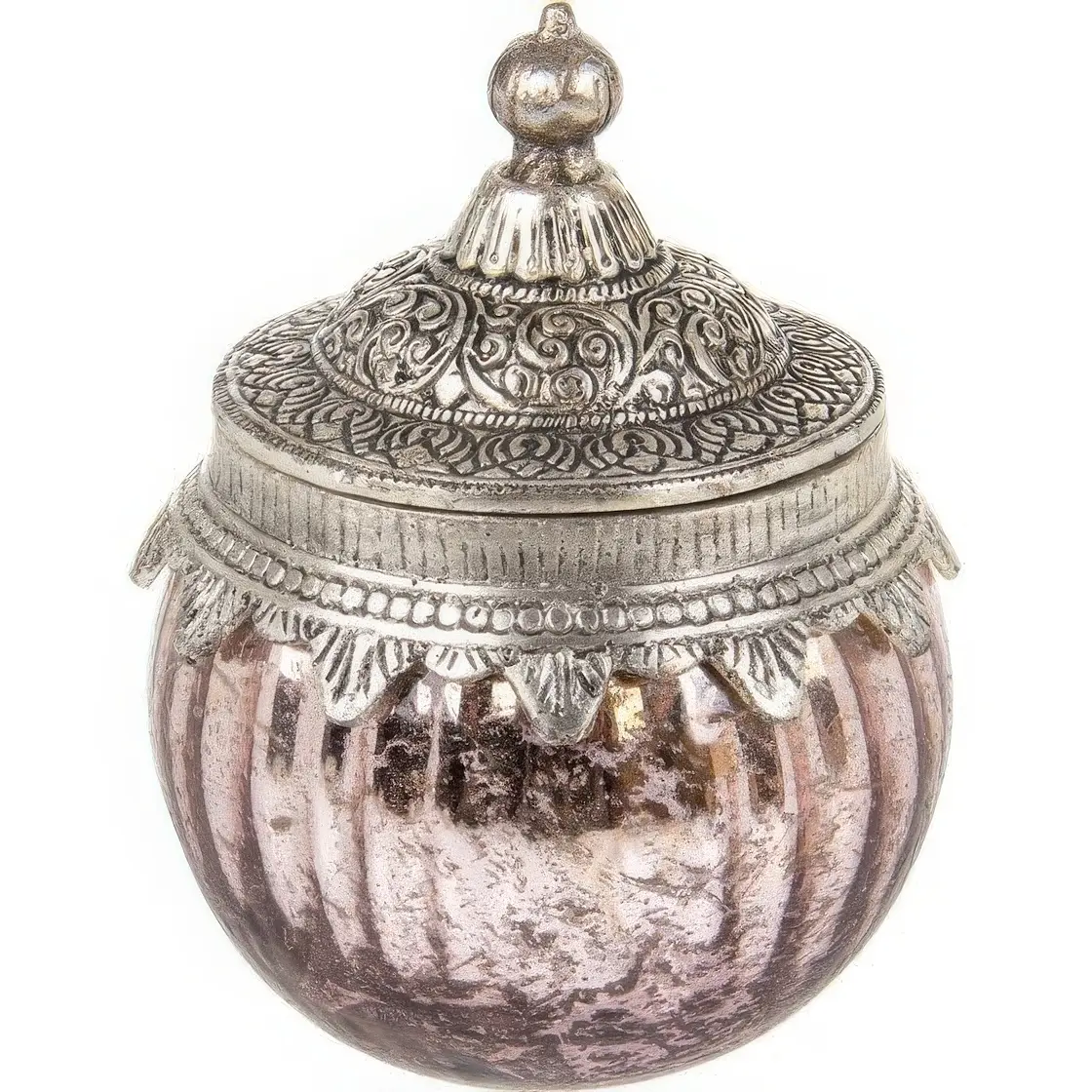 Декоративна банка для сипучих продуктів Lefard скляна з металевою кришкою 14.5x10 см рожева (876-081)