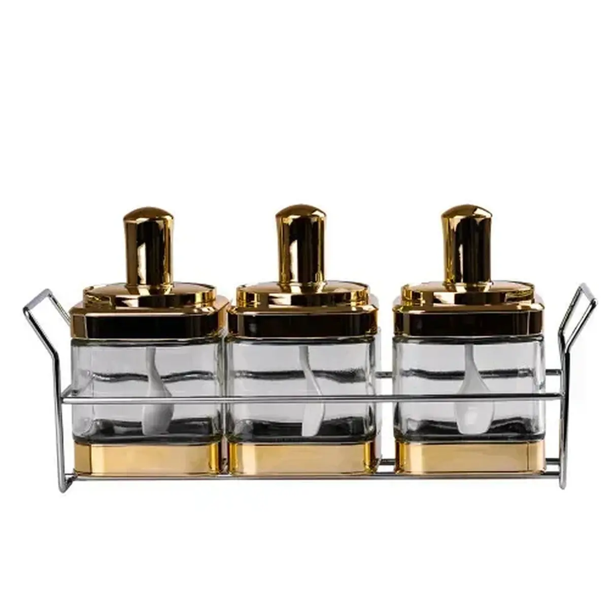 Набір ємностей для сипучих продуктів TS Kitchen HP531FS1030J 3 штуки з ложкою на підставці золотистий