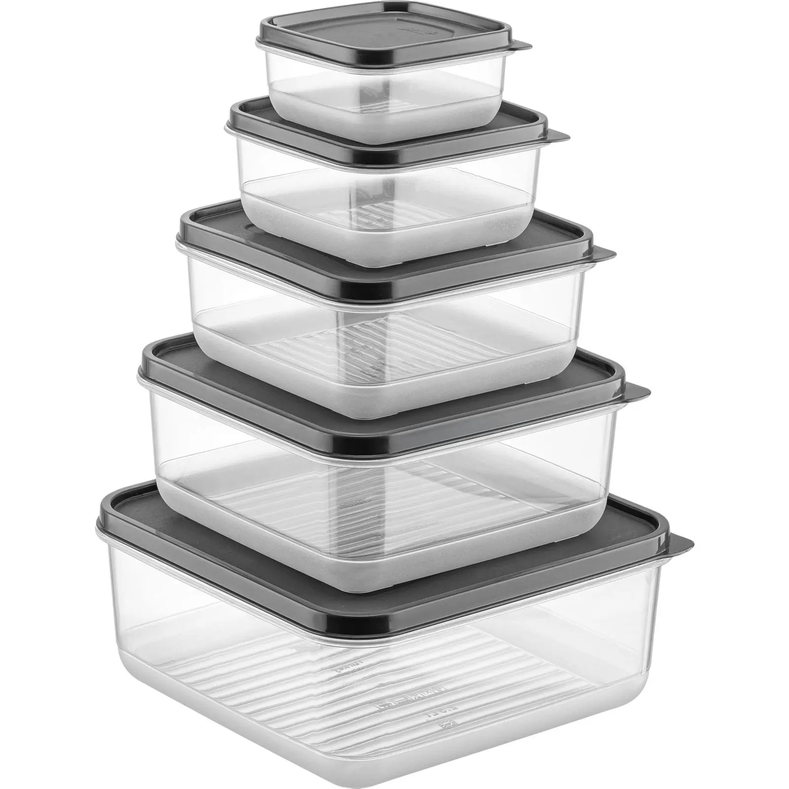 Набір контейнерів для зберігання продуктів Freshlife квадратні з кришками 5 шт. 0.25 л, 0.5 л, 1 л, 1.7 л, 2.5 л (D-391)
