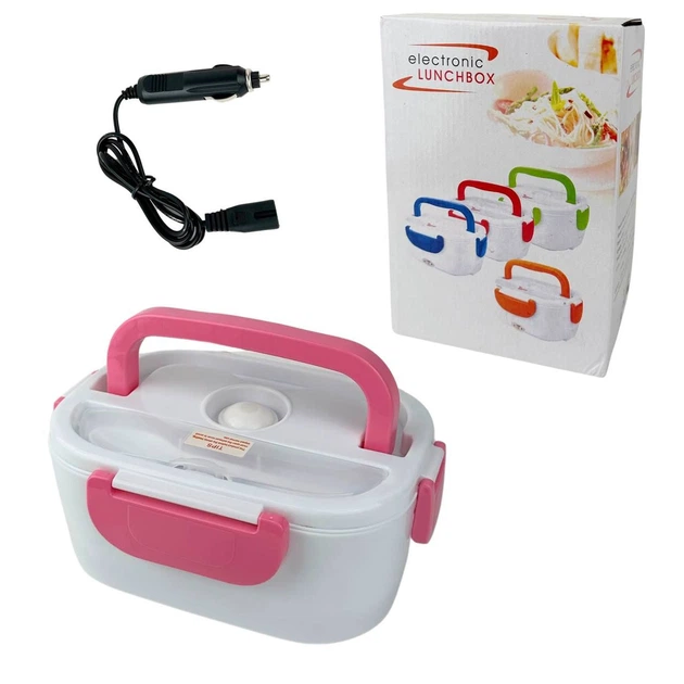 Ланч-бокс електричний універсальний пластиковий з підігрівом 12V білий з рожевим