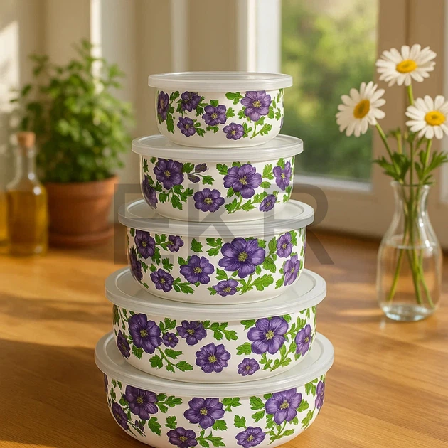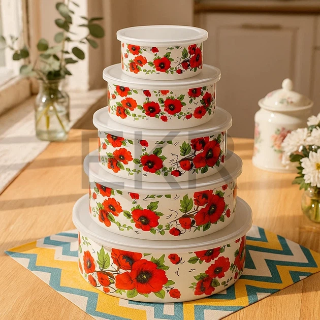 Набір емальованих судочків із кришками Edenberg 5 шт для зберігання продуктів EB-12612