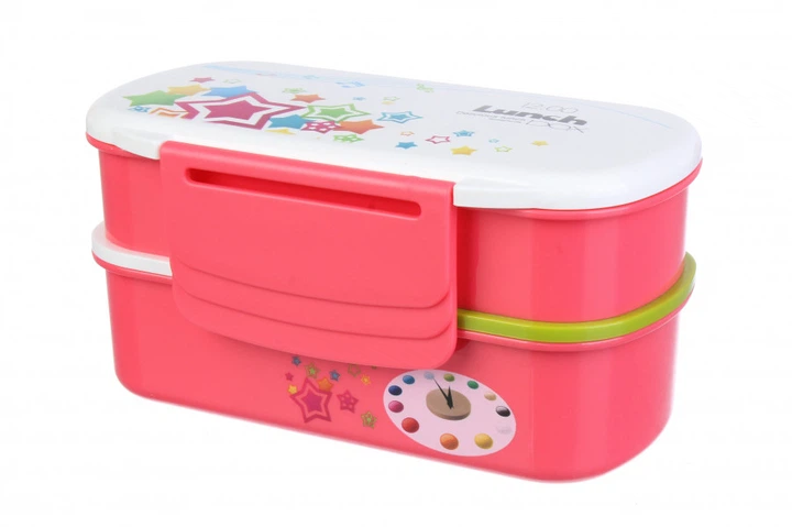 Ланчбокс, 600 мл, 2 рівні+ міні ложка та вилка, 18*10*9см рожевий