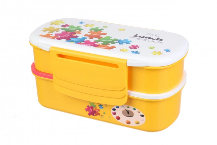 Ланчбокс, 600 мл, 2 рівні+ міні ложка та вилка, 18*10*9см жовтий