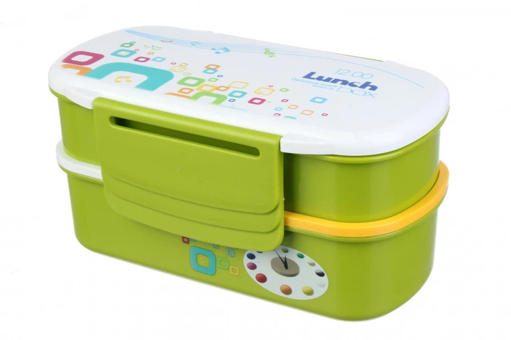 Ланчбокс, 600 мл, 2 рівні+ міні ложка та вилка, 18*10*9см зелений