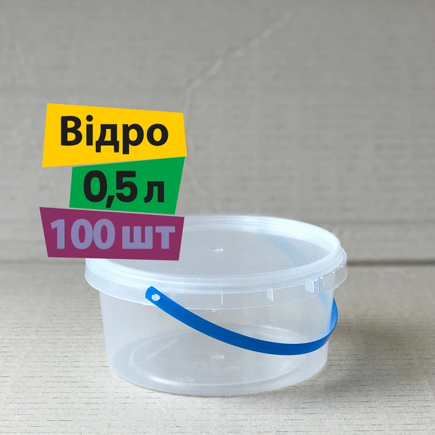 Відро 0,5 л з кришкою (100 шт), харчовий прозорий пластик